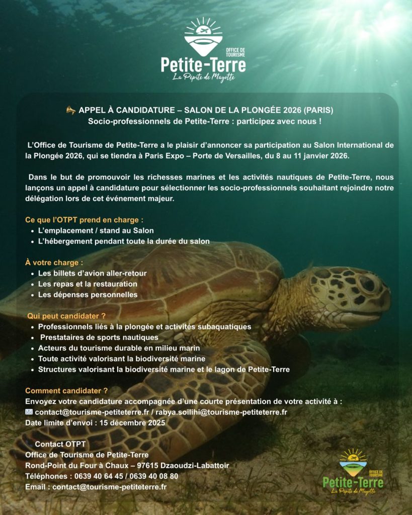 L’Office lance un appel à candidatures pour sélectionner des partenaires souhaitant être accompagnés lors du prochain Salon de la Plongée. Cette participation vise à valoriser les acteurs engagés dans la plongée, la découverte du milieu marin et les activités subaquatiques. Rejoignez-nous pour mettre en lumière votre expertise et contribuer ensemble au rayonnement de notre destination auprès du public passionné de plongée !